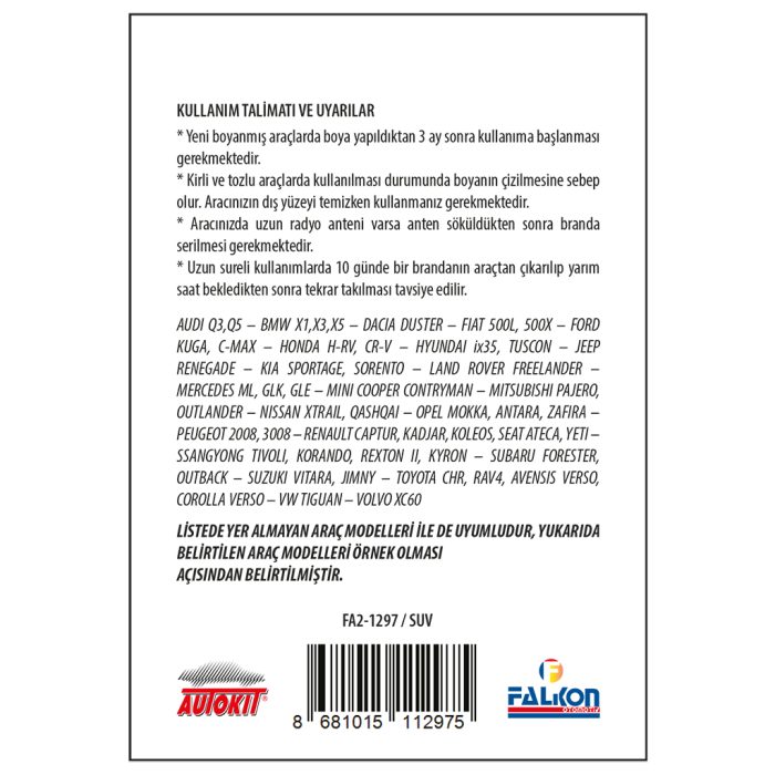 Kirli ve tozlu araçlarda kullanılması durumunda boyanın çizilmesine sebep olur. Aracınızın dış yüzeyi temizken kullanmanız gerekmektedir.