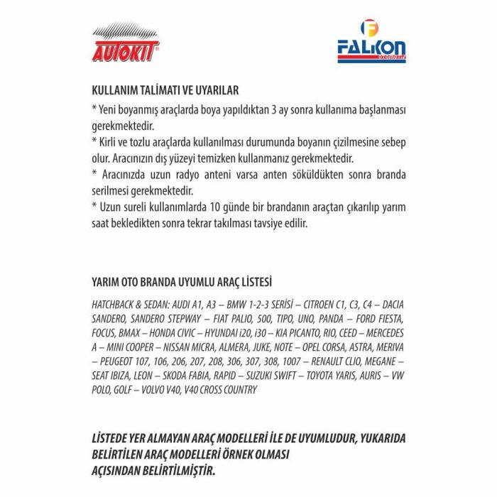 Uzun sureli kullanımlarda 10 günde bir brandanın araçtan çıkarılıp yarım saat bekledikten sonra tekrar takılması tavsiye edilir.